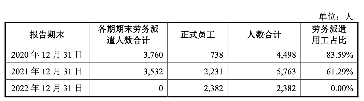 此外,界面新闻还注意到,威邦运动曾聘用劳务派遣员工,2020年、2021年劳务派遣员工比例达到83.59%、61.29%。