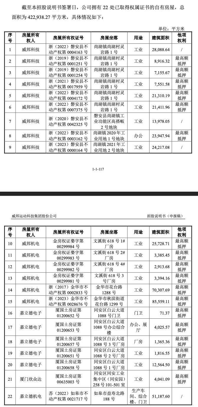 2021年,威邦运动业绩大涨,公司大手笔分红8亿元,但多处房产等已被抵押贷款,在面临短期较大资金压力下,公司欲借助此次IPO募资16亿元“回血”。