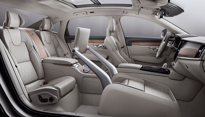 同时,S90长轴距豪华轿车允许座椅大范围、大角度调节,三种乘坐模式为乘员营造最佳的乘坐体验;座椅之外,可收放式工作台,丰富灵活的存储空间,加热/制冷杯座,可调节搁脚板,便于工作或休闲的大屏幕娱乐系统都是一应俱全;后座触屏控制界面,隐藏式冰箱,瑞典皇家水晶玻璃品牌欧瑞诗(Orrefors)的手工制作水晶杯等很好地营造了豪华氛围。