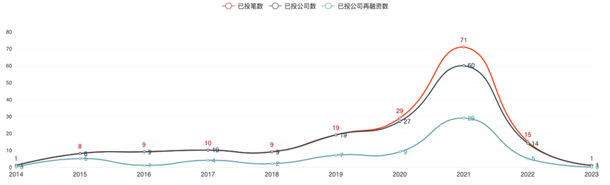 根据投资界VC情报局数据显示,成立以来,量子跃动发生的投资事件超200起,几乎覆盖了从天使轮到收购的全部轮次,在2021年出手率更是达到顶峰——一年诞生超70笔投资,甚至还收编了不少创业团队。