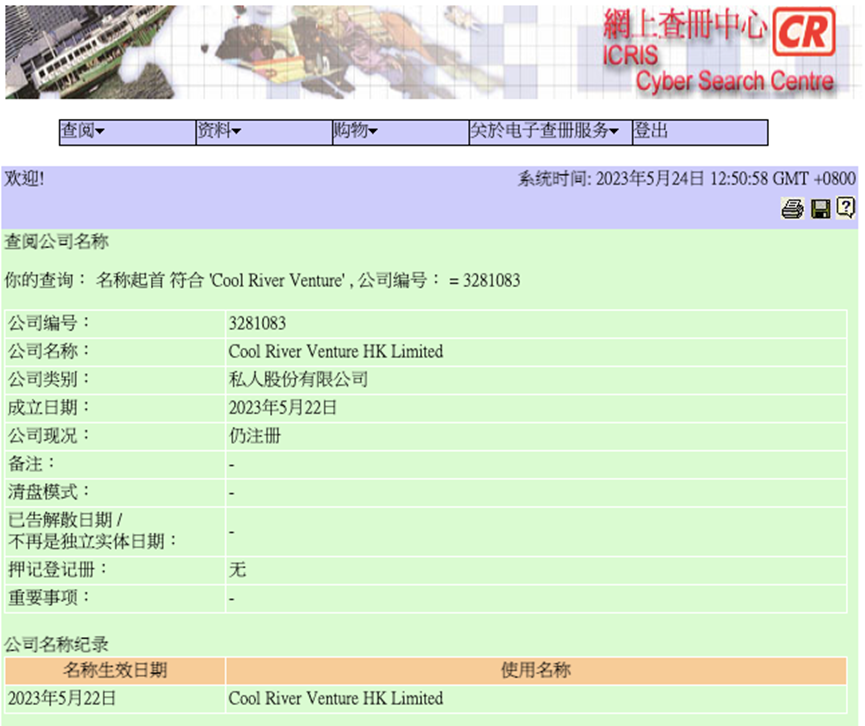 5月24日,据香港公司注册处网站显示,张一鸣在香港成立了一家个人投资基金。该基金名为Cool River Venture,性质是私人股份有限公司,2023年5月22日生效。第一财经引援知情人士报道,该基金的主要投资方向是科技相关行业。