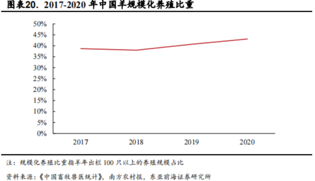 在2018年至2020年期间,国内100只以上的养殖比重出栏量分别是38%、40.7%、43.1%。