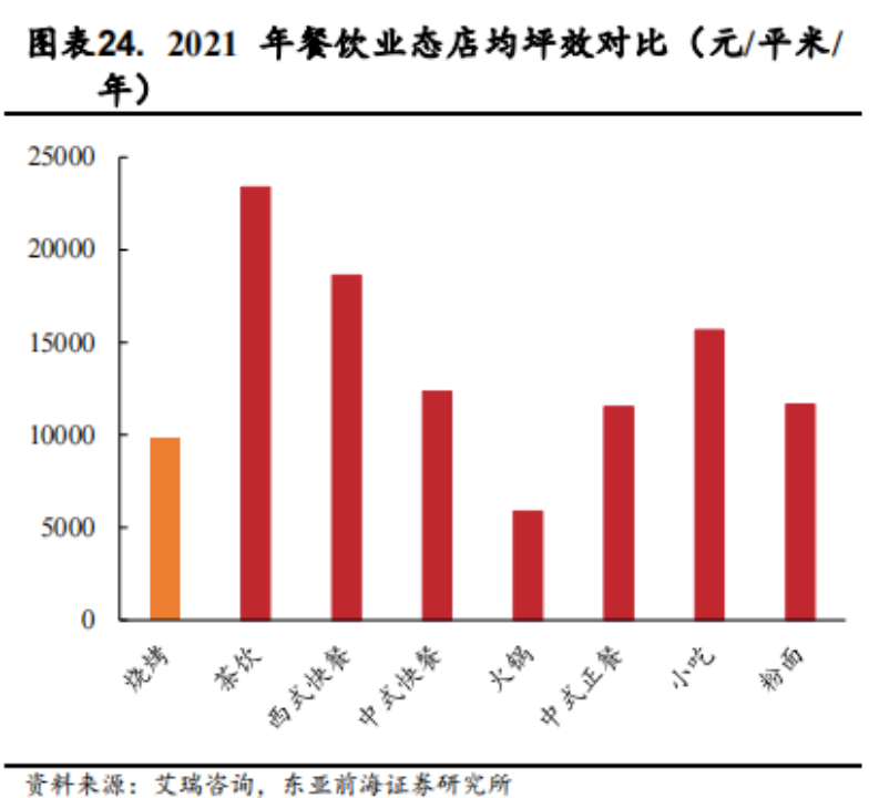 这种情况下,火锅店坪效自然很低,而烤串店的坪效会拉高些。