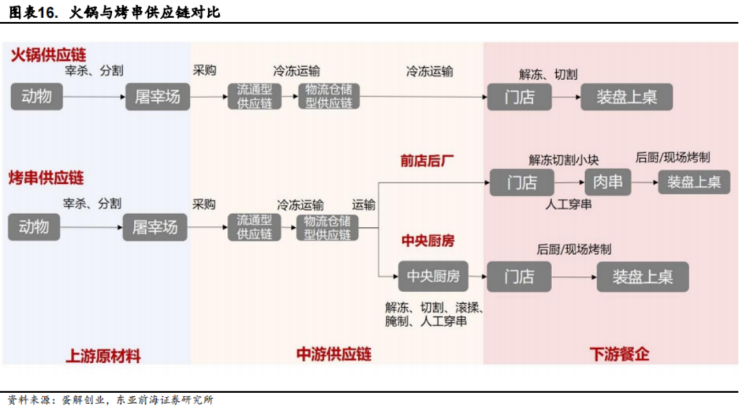 和火锅很像,烤串的上游是养殖屠宰环节,中游是供应链环节,下游是餐饮企业。