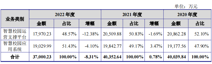 对于公司智慧校园运营支撑平台收入减少,金智教育招股书表示,受宏观经济条件影响,一方面高校教育经费优先满足线上教学需求,另外一方面,公司智慧校园运营支撑平台新增订单较少。