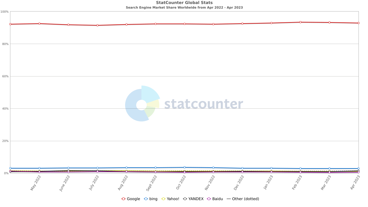 自微软2月将AI加持于必应搜索之上后,该搜索引擎的流量增长了16%,但直到上月,谷歌在全球各类平台上的市场份额仍然是必应搜索的34倍。