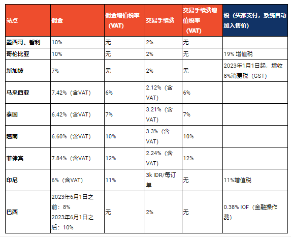 Shopee官网显示的跨境店各站点卖家佣金及交易手续费、买家税率