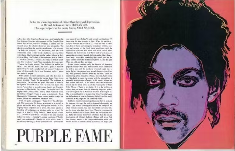 1984年,《名利场》杂志为了制作摇滚明星普林斯的封面,委托安迪·沃霍尔使用戈德史密斯拍摄的照片进行创作,该杂志以400美元的价格向戈德史密斯购买了这张照片的一次性使用权。接下来几年,安迪·沃霍尔基于该肖像照,又继续创作了15件作品。1987年,沃霍尔去世,安迪·沃霍尔视觉艺术基金会(AWF)接管了他的这些作品。