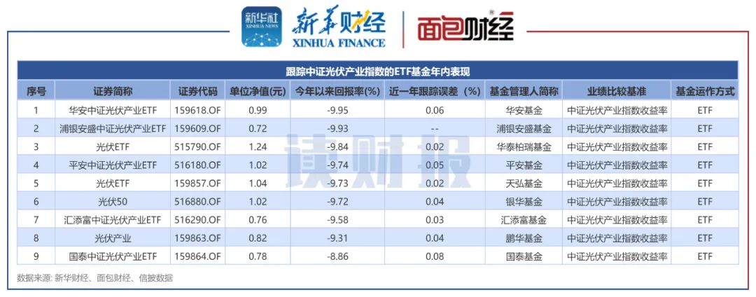 从跟踪指数表现来看,国泰中证光伏产业ETF的近一年跟踪误差为0.08%,同类偏高;天弘基金、华泰柏瑞基金旗下产品控制在0.02%左右。