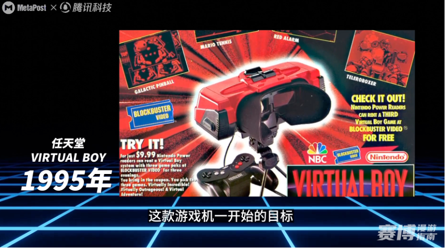 另一边世嘉的死对头任天堂眼看形势不妙,1995年抢在世嘉之前发布了第一款VR概念掌上游戏机Virtual Boy。你没听错,这款游戏机一开始的目标是作为掌机天王Game Boy的继任者。理论上玩家可以随身携带它,在任何场合随时拿出来,就能进入3D立体的游戏世界中,初代VR一体机了属于是。
