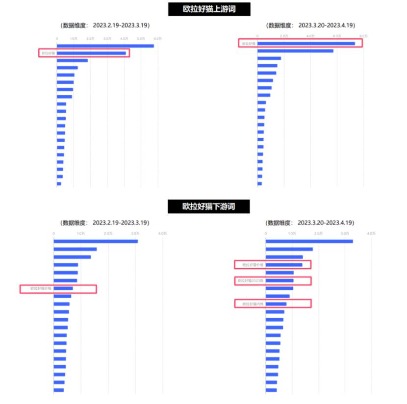 品牌营销成功与否,并不是活动爆发高光时的昙花一现,流量褪去后的市场反馈才是真实的检验标准。本次活动中,小红书正是通过KFS(KOL+FEEDS+SEARCH)的营销打法,即多圈层达人定制优质内容、黄金资源释放内容价值、搜索工具深入用户心智,实现了对用户决策的长远影响。截止收官,欧拉好猫上游词超过竞品成为TOP1,欧拉好猫与消费行为相关的下游词搜索上涨,欧拉好猫产品相关词条在搜索飙升词中高热出现。数据之后是用户搜索行为被强势改变,用户心智被引导以及产品卖点深度种草,充分论证了本次活动的成果。