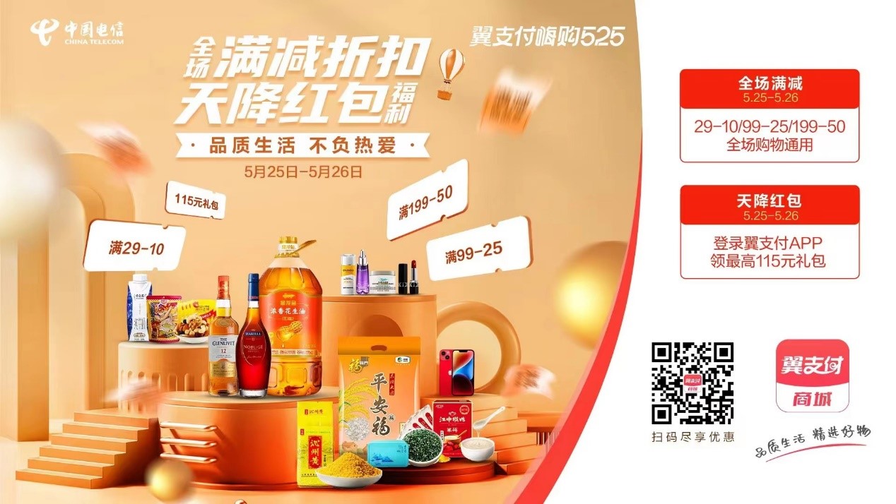 聚焦消费品质提升,创新活动服务体验,5月25日至26日,“嗨购525”爆点主题日,翼支付与每一个热爱生活的你,共享数字新消费。