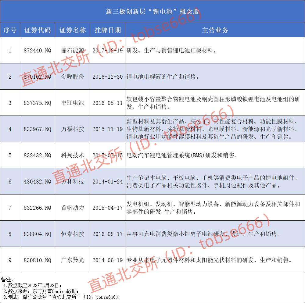 随着我国锂电池的需求持续增长,锂电池概念前景广阔,受到市场追捧。除宁新新材外,北交所和新三板也有不少“锂电池”概念股。