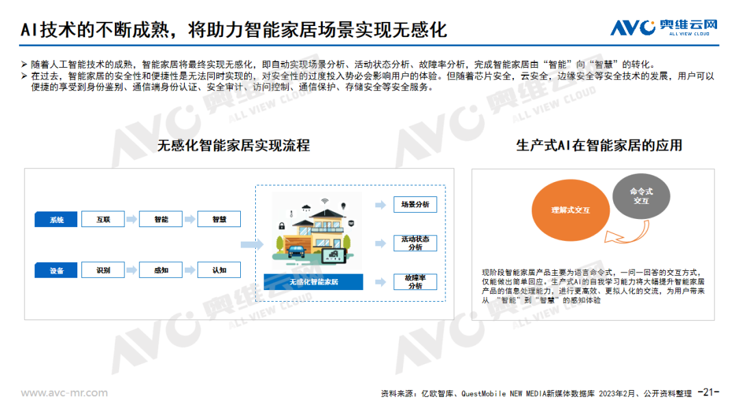 (2)随着AI技术的不断变革智能家居的入口将逐渐无感化,智能家居产品与用户的交互水平也将再上新台阶;