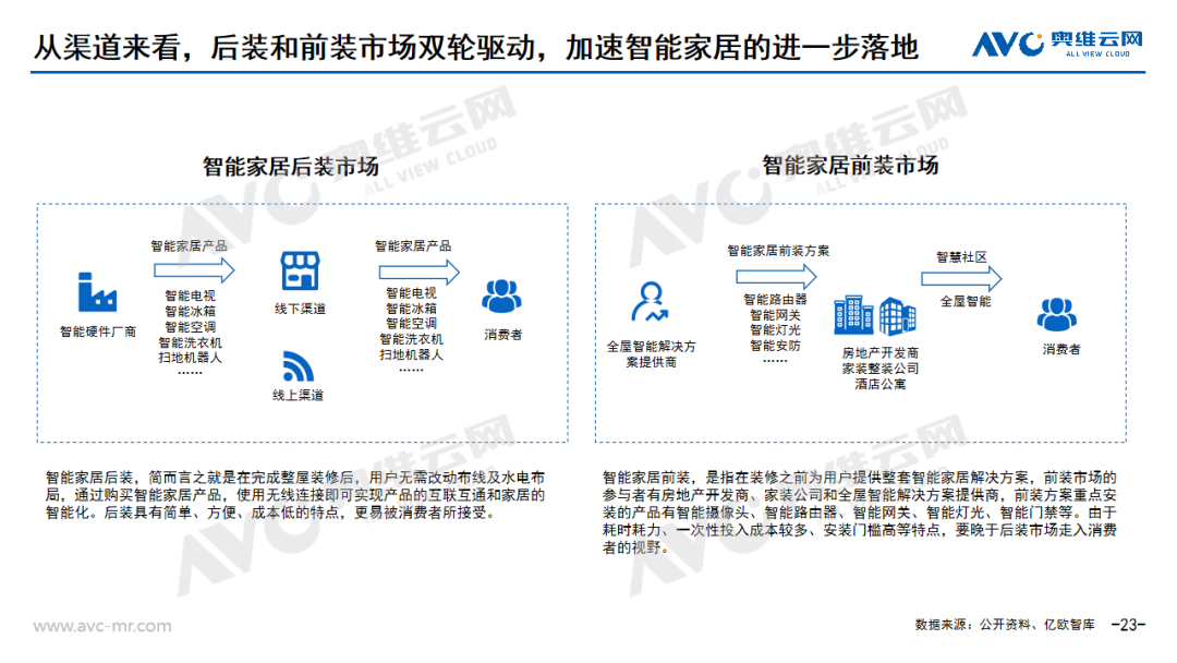(4)从渠道来看后装和前装市场双轮驱动,加速智能家居的进一步落地
