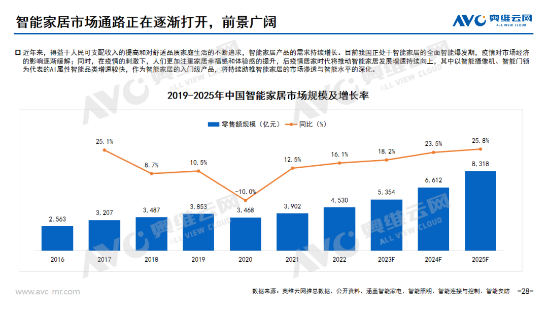 最后,我们认为智能家居市场通路正在逐渐打开,前景广阔,预计未来三年的复合增长率将达到22.5%。
