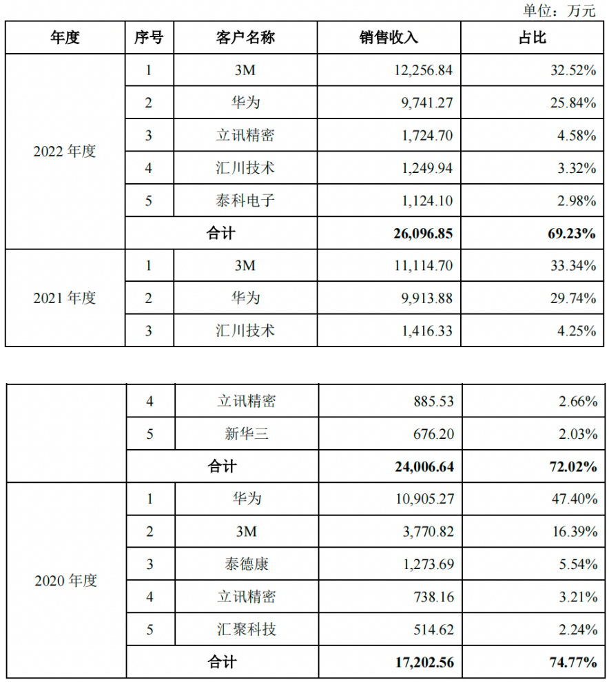 盛凌电子的主要客户包括3M、华为、立讯精密等知名企业,并且存在客户集中度较高的风险。