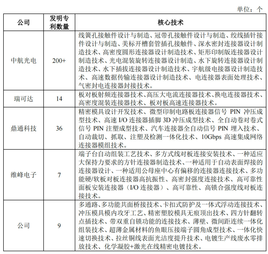 「界面新闻·子弹财经」还注意到,盛凌电子的发明专利数量和同行公司有着较大差距,中航光电的发明专利数量超过200个,瑞可达和鼎通电子的发明专利数量分别为14个、36个,也远远超过了盛凌电子。
