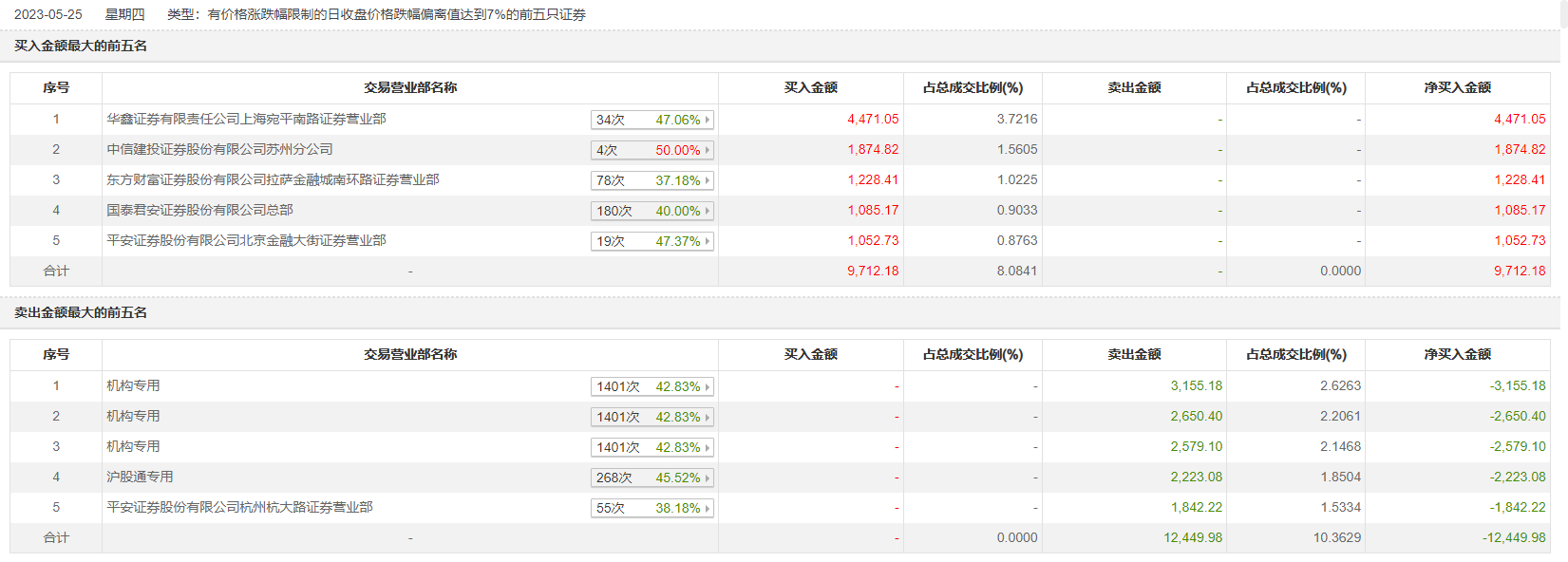 5月25日,中国科传今日跌8.41%,龙虎榜数据显示,上榜营业部席位全天成交2.22亿元,占当日总成交金额比例为18.45%。其中,买入金额为9712.18万元,卖出金额为1.24亿元,合计净卖出2737.8万元。