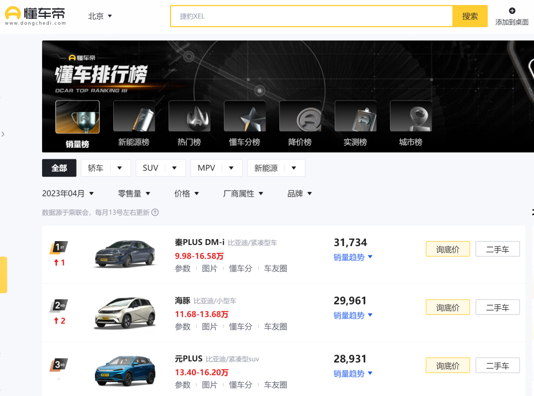 此外,5月25日还是比亚迪宋Pro DM-i冠军版正式上市的日子,其官方指导价为13.58万元-15.98万元。珠玉在前,今年2月秦PLUS DM-i“冠军版”面世后,已经连续两个月成为新能源轿车销冠。