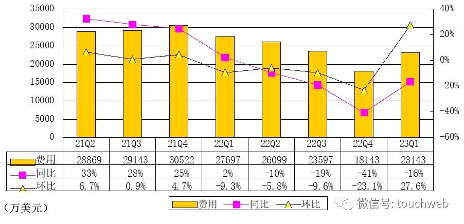 微博2023年第一季费用2.31亿美元,较上年同期的2.77亿美元下降16%。