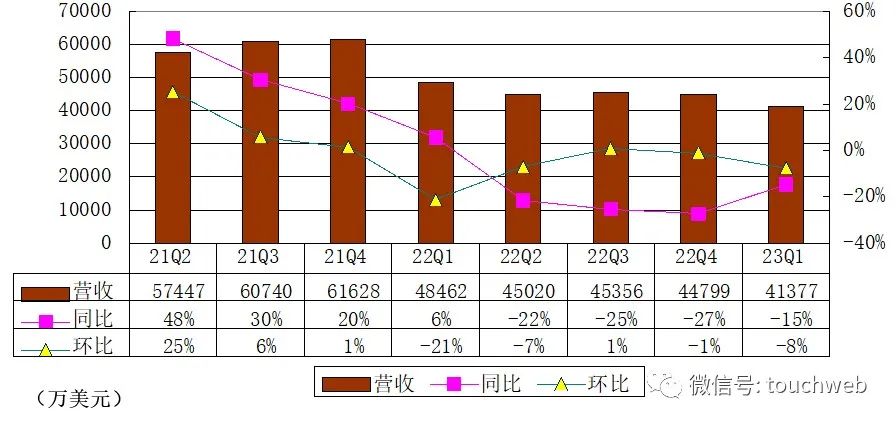 微博2023年第一季度营收为4.14亿美元,同比下降15%,依据固定汇率计算同比下降7%。