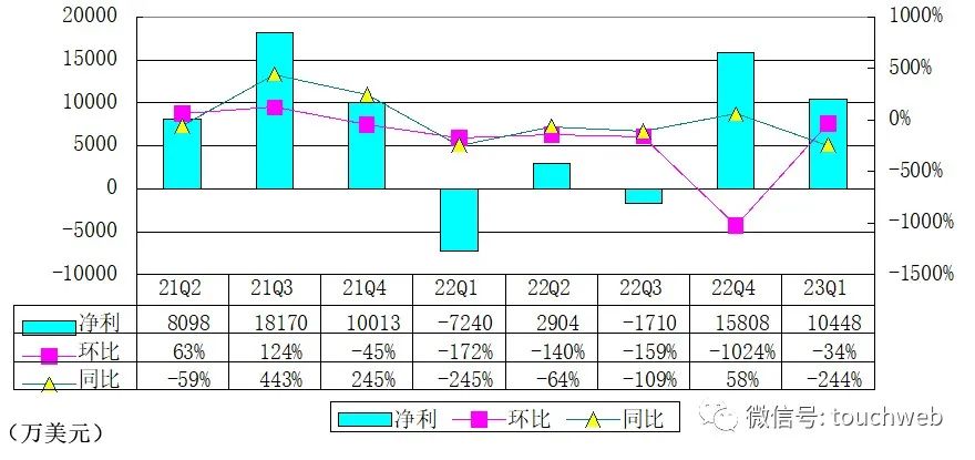 微博2023年第一季度归属于微博股东的净利润为1亿美元,上年同期为净亏损6750万美元。