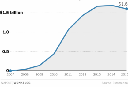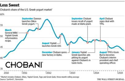 ▲ 2010 年-2015 年,Chobani 在美国希腊酸奶市场占比,来源:华尔街日报