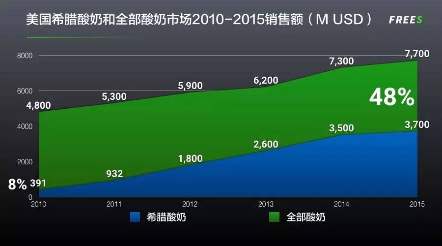 目前美国酸奶市场近 80 亿美元,希腊酸奶的份额占比 48%,Chobani 则占有美国整体酸奶市场份额将近 20%。