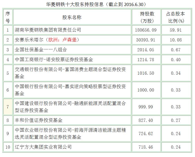 以华菱钢铁为例,2016年7月,《财富》杂志发布中国企业500强名单,湖南华菱钢铁股份有限公司位列榜单第142位,位居钢铁行业第9位。从华凌钢铁十大股东信息可以看出,其第二大股东为世界钢铁“龙头”——安赛乐米塔尔。