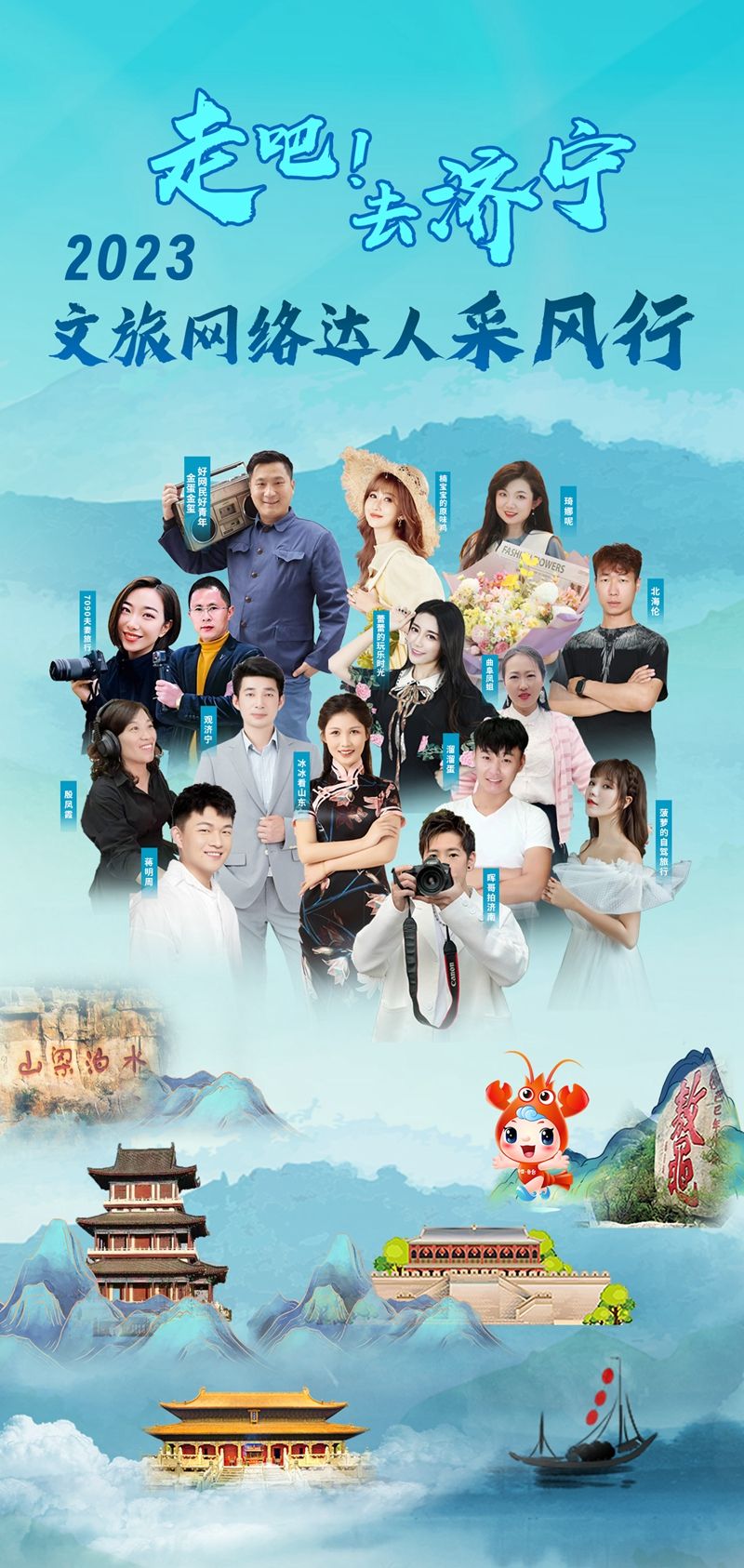 “走吧!去济宁·2023文旅网络达人直播大赛”活动,面向全网网络达人,以济宁历史文化、旅游景点、民俗风情、特色美食、夜间经济、乡村风貌、特色节庆等为表现对象,通过拍摄制作短视频、现场直播等方式,记录发展变化,展现济宁之美。