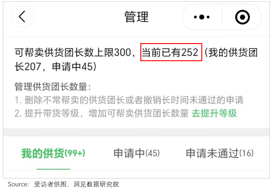 众所周知,大平台的优势在于规模效应、摊平成本,可以把价格压得更低。这一定程度上会挤压小微平台的生存空间。同理,大团长的马太效应,对小团长的挤压不言而喻。