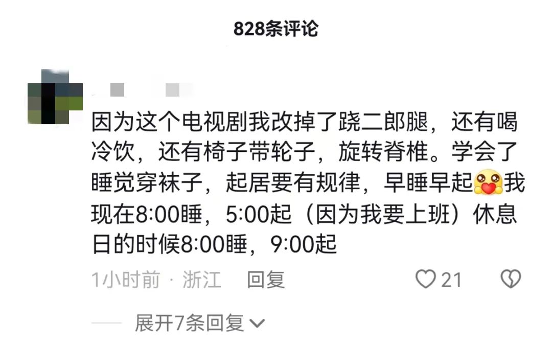 对于该剧的拥护者来说,确实有不少对日常有益的干货,比如剧中孙头头腰和胯骨的不适,被指出是长期跷二郎腿导致;力权给老师拉旋转椅,反而成了老师讲脊椎问题的教具。这些是否都是中医知识且不谈,至少让许多人表示有了收获感。