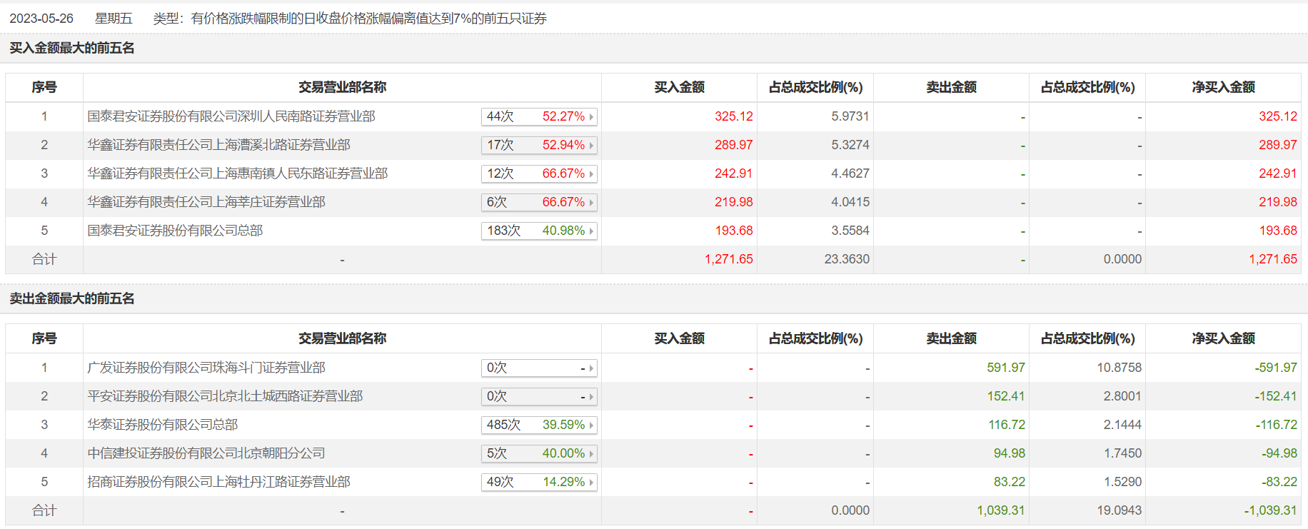 具体来看,国泰君安证券深圳人民南路证券营业部、华鑫证券上海漕溪北路证券营业部分别买入325.12万元、289.97万元;广发证券珠海斗门证券营业部、平安证券北京北土城西路证券营业部分别卖出591.97万元、152.41万元。