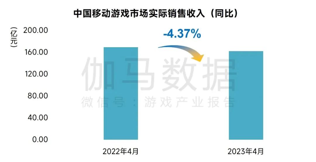 2023年4月,中国移动游戏市场实际销售收入162.18亿元,环比上升4.03%,同比下降4.37%,新品表现较优。