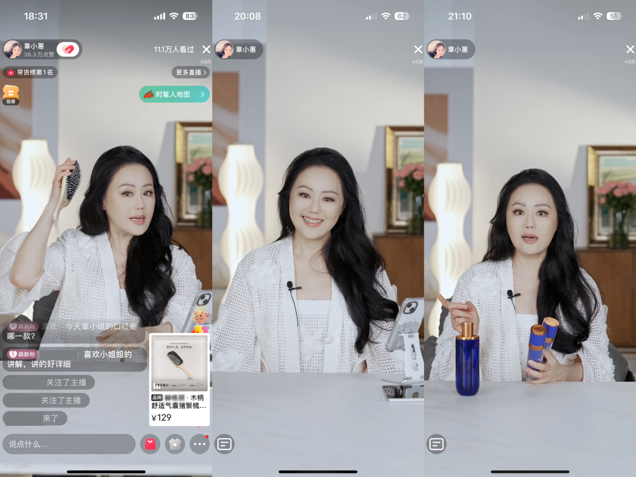 当晚,59岁的章小蕙身着vintage Chanel白色套装,用一品一故事的方式,霸住小红书带货榜第一的位置。