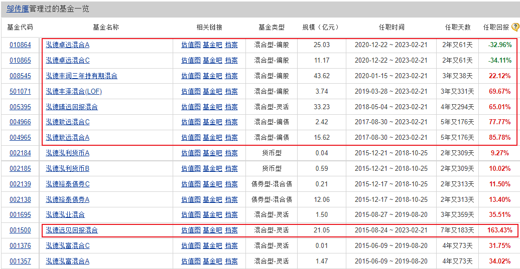 反映到基金产品上,2020年末,原副总经理邬传雁管理的8只权益类基金规模492.24亿元,占泓德基金总规模近一半的比例,但天不遂人愿,市场更是多变,截至2023年一季度末,8只基金规模剩下155.88亿元。