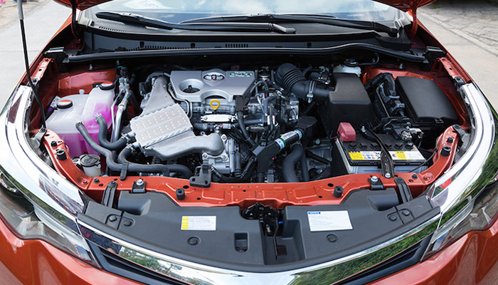 车尾,右侧“D-4T”的标识表明了这台雷凌的真实身份。作为丰田全球首款小排量涡轮增压发动机,D-4T直喷涡轮增压发动机集成了混和动力发动机所特有的阿特金森循环技术和直喷涡轮增压技术。广汽丰田方面称,此台发动机具有低转速高扭矩、高性能低油耗以及不易积碳不烧机油的特性。