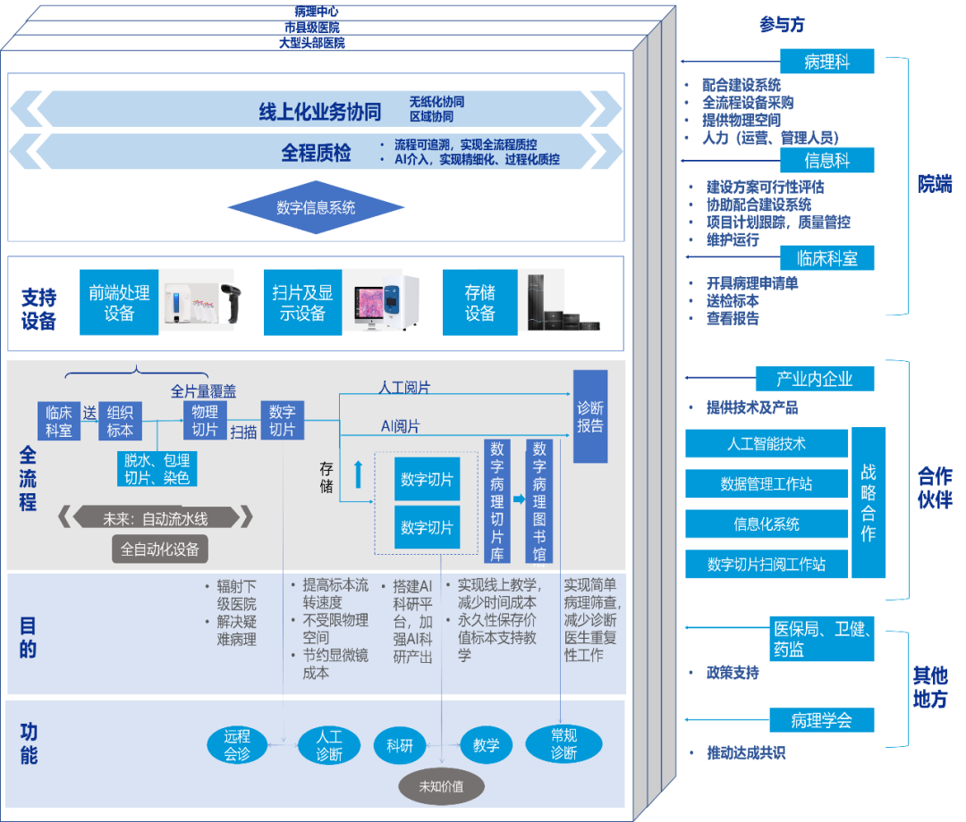 数字化智慧病理科建设不仅仅是病理科自身的建设,更需要医院整体生态系统的配合以及产业端的联合推进。
