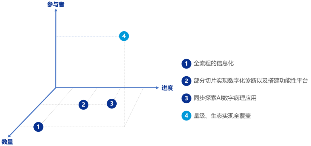 作为头部大型医院,全面数字化智慧病理科建设应该包括3个方向:全模块的建设;全病种、全数量病理片的覆盖;头部医院牵头推动全生态的建设参与。