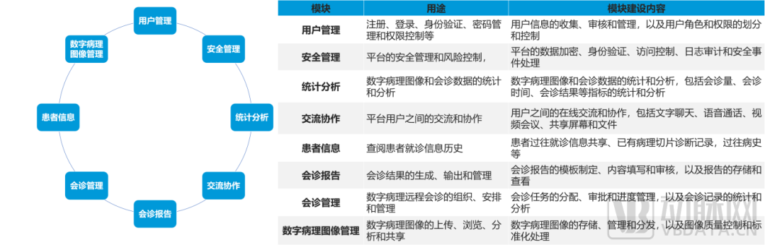 通过远程会诊平台实现数字病理远程会诊和交流。数字病理系统可以通过远程会诊和交流功能,让医生之间展开协作,提高诊断的准确率和效率。远程会诊平台核心是远程会诊系统的搭建。一个成熟的远程会诊系统需要包括以下8个功能模块。