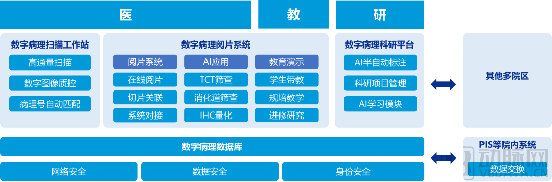 建立数字病理系统,实现物理切片数字化。数字病理系统包括扫描工作站、数字诊断、存储模块、数字化质控、数据安全五大模块。