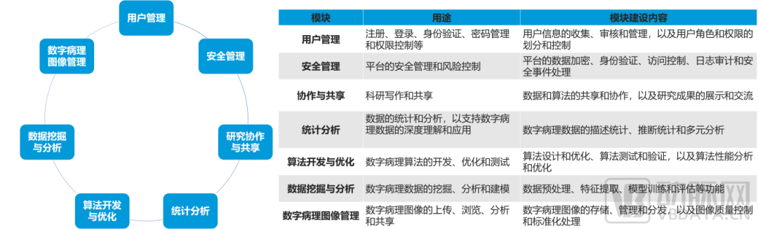 AI结合数字病理技术可以推动病理科研的快速发展,挖掘病理切片更多未知的价值以及应用方向,主要体现以下三个功能模块。
