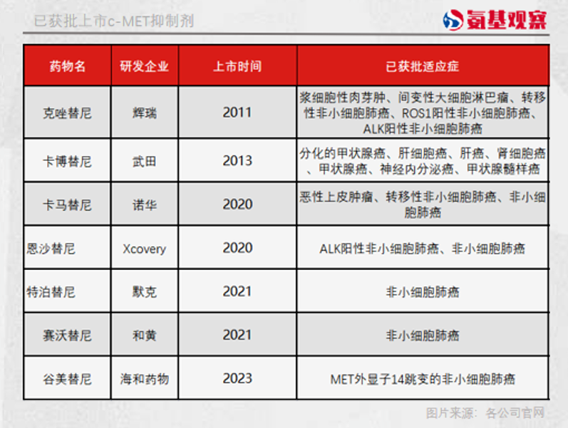 在此后,全球又有多款c-MET抑制剂问世。如今全球范围内,已经有7款c-MET小分子抑制剂被研发出来。