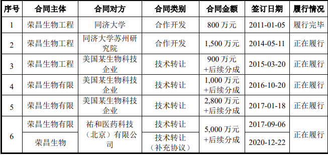 在荣昌生物招股书中,曾详细披露了每家公司的合作金额,与某美国生物公司和百奥赛图的合作均包含后续的分成条件。由于荣昌生物暂未对外公司条款细则,甚至没有公布那家美国公司的名字,因此投资者无法获悉其中的交易细则,这无疑增加了公司潜在的不确定性。