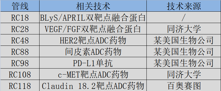 图:荣昌生物重点管线技术来源,来源:锦缎研究院