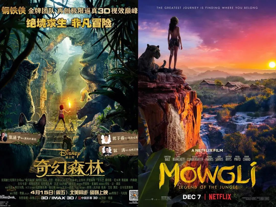 无独有偶,在对英国小说家吉卜林的《丛林之书》的改编战中,华纳兄弟宣称将绕开迪士尼的经典动画作品,直接还原小说原作。而迪士尼则突出宣传真人翻拍版将复刻其1967年动画的经典场面。