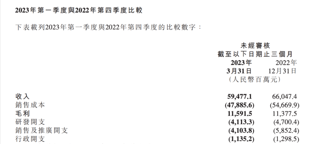小米2023年一季度的费用支出情况,图源小米财报