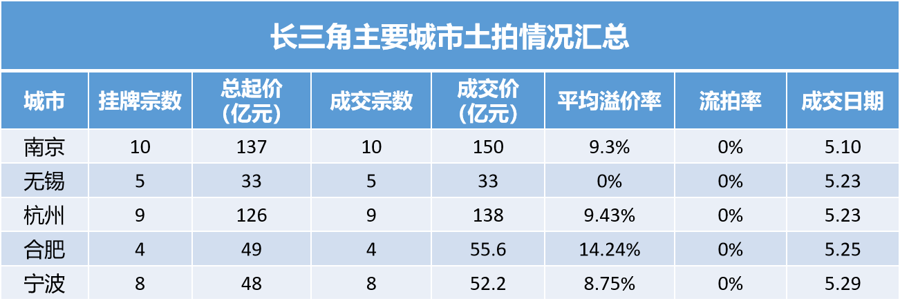 首先,从供给端来看,本次土拍总共只有8宗用地,住宅用地仅有三宗;加上2022年第三批次10宗、第四批次6宗、2023年第一批次10宗,最近一年,土地市场供货量明显减少。且土地市场供货量少的现象并不是宁波一个城市所独有的,而是普遍存在的。五月份以来,杭州、南京、无锡、合肥等长三角核心城市均进行了集中土拍,每座城市的供地数量都不超过10宗,无法满足开发商增加土地储备的需求。