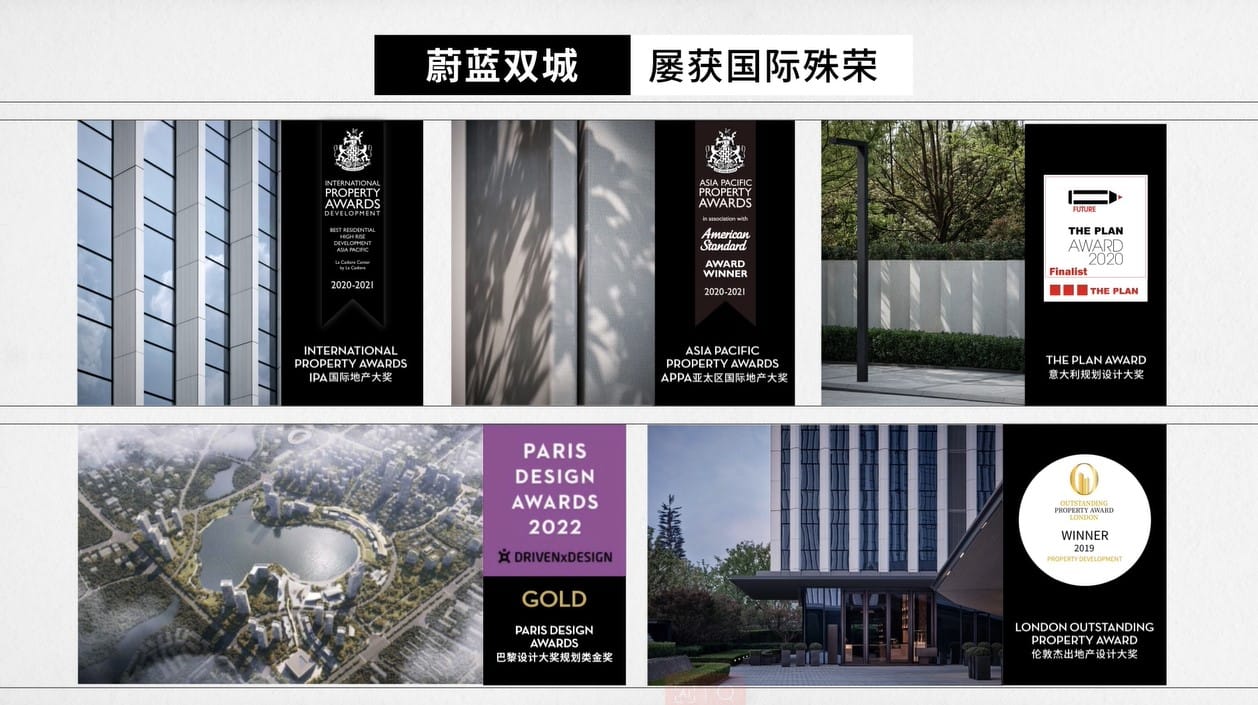 从「花园城」到「湖滨城」, LA CADIERE邀请了SCDA、WATG、AECOM、PLD、TCDL等世界级的团队参与规划和设计,依托极致造城品质,蔚蓝双城荣获IPA国际地产大奖、伦敦杰出地产设计大奖、意大利规划设计大奖、巴黎设计大奖等国际大奖,为城市发展贡献审美力和创造力。